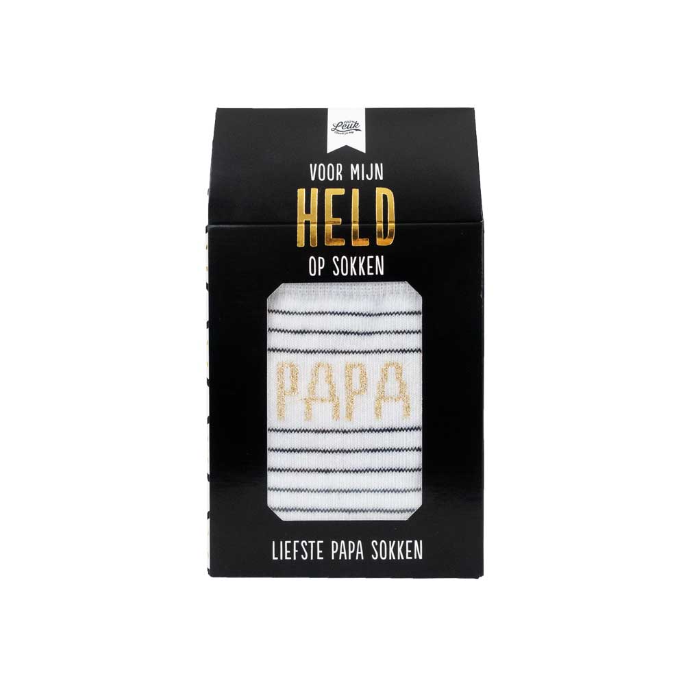Mijn papa is de allerliefste! Met deze leuke sokken laat jij aan je papa weten dat hij jou held op sokken is. Door zelf een berichtje op de achterkant te schrijven maak je het ook gelijk een persoonlijk cadeau. Voor bijvoorbeeld zijn verjaardag, Vaderdag of gewoon omdat hij de beste is. Deze sokken zijn één maat en past aan iedere voet!